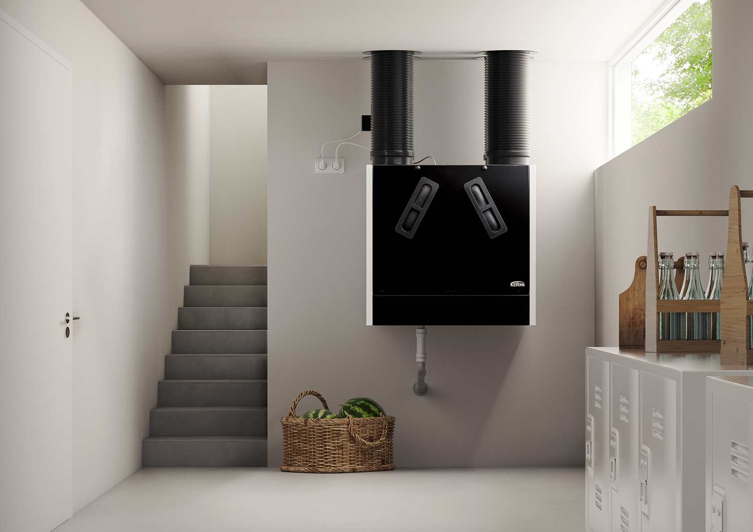 Rekuperatory X dostarczane są z suchym syfonem membranowym, przełącznikiem biegów RF i bramką KERMI Wi-Fi do aplikacji.