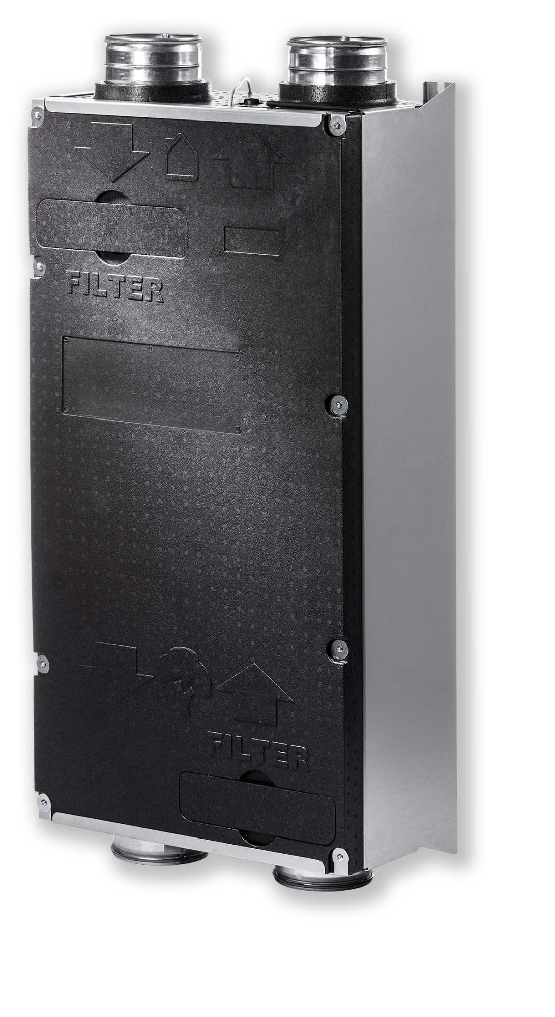 Niski poziom hałasu dzięki cichym i ekonomicznym wentylatorom EC komutowanym elektronicznie. Wentylatory są osadzone bezpośrednio w korpusie EPP i nie mają połączenia z elementami metalowymi obudowy, co gwarantuje nie przenoszenie wibracji.