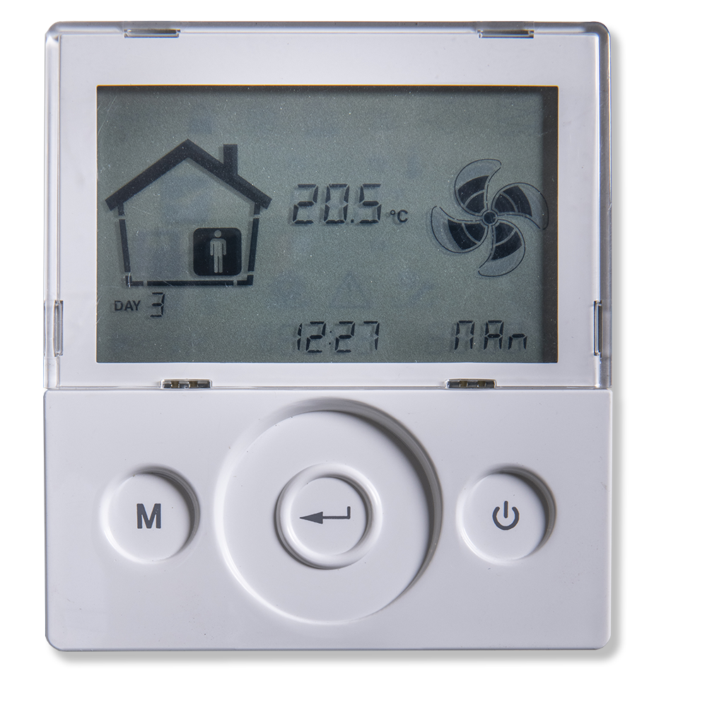 Rekuperator C225 ze sterownikiem T-EP może pracować w trybie ręcznym – 5 biegów, z uwzględnieniem programu tygodniowego, oraz w trybach automatycznych zgodnie z zapotrzebowaniem.