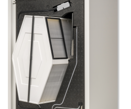 Wymiennik ciepła krzyżowo-przeciwprądowy wymiennik z polistyrenu o wysokiej skuteczności, wymiennik entalpiczny w C225 EN. Wymiennik jest automatycznie chroniony przed zamarzaniem wody w miesiącach zimowych dzięki funkcji defrost – redukcji nawiewu do minimalnego poziomu.